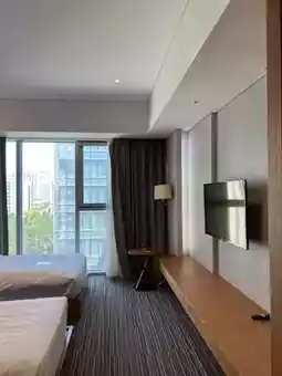 Our room was a vibrant mix of purples, blacks, and pops of neon—modern, stylish, and full of personality. Every detail felt intentional, from the lighting to the artwork to the sleek furniture.
