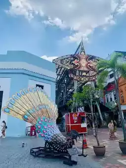 Tucked away in the alley next to Kasturi Walk is a series of captivating murals. Centered around the theme of windows, these artworks depict various slices of life: couples and cartoon characters reflecting Malaysia's multiculturalism, hard-working laborers, gardeners tending to plants, and individuals lost in thought. Rendered in nostalgic black-and-white or colorful sketches brimming with life, they add an artistic and heartfelt touch to the bustling heart of Kuala Lumpur. These murals are not only perfect backdrops for photos but also serve as windows offering glimpses into the everyday life of Malaysia.