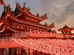 Watch the six-tiered temple become a living tapestry of color and devotion. Join locals in ancient rituals under the gaze of golden goddess statues, then witness the stunning cityscape view as sunset paints the sky behind the temple's dragon-adorned roofs.