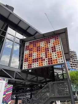 This building is called The Five, and it houses a famous restaurant, Pizza Mansion. This restaurant has received numerous reviews.