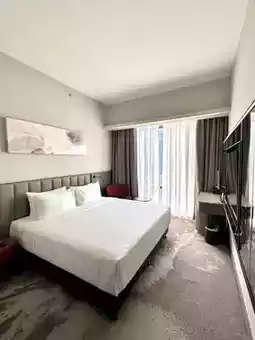 From the window, you can see the vibrant city of Kuala Lumpur, including the iconic TRX building standing tall among the skyline 🏢✨.