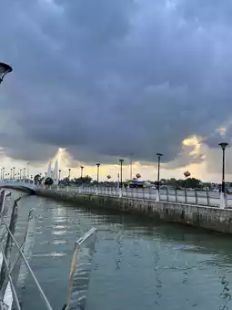 2️⃣ As night falls, the pace slows. Grab a bowl of laksa or tong sui from a local stall, then wander toward the water. Just a few steps away, the Terengganu River mouth opens to sea breeze and skyline reflections — the Drawbridge lights up like a dream. 🌉✨
