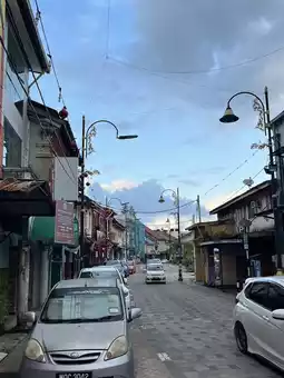 1️⃣ Start your evening stroll in Chinatown (Kampung Cina), where narrow lanes glow under red lanterns and heritage shophouses hide Insta-worthy murals and vintage cafés. 🧋🎨