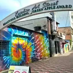 The alleyway is not only clean and well-kept but also filled with vibrant 3D murals and stunning wall art that are totally Instaworthy.