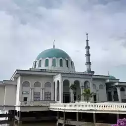 The **Kuching Waterfront Mosque**, also known as **Masjid Bandaraya Kuching**, is a prominent mosque located along the scenic Kuching Waterfront in **Sarawak**, Malaysia. This modern mosque features a blend of contemporary Islamic architecture with traditional elements, making it an iconic structure in the city. It is known for its striking white exterior, grand domes, and spacious prayer hall, offering a peaceful atmosphere for worshippers and visitors alike.
