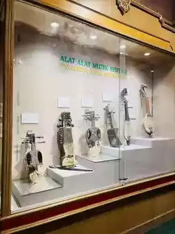 The museum comprises seven thematic galleries set around a tranquil central courtyard garden. Highlights include intricately designed Hajj attire, traditional musical instruments like the rebab and gambus, and elegant stringed instruments that showcase the region’s musical heritage.