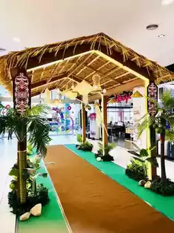 Vivacity Megamall bursts with color this Hari Gawai as it transforms into a cultural showcase of Dayak heritage. Towering replicas of rumah panjai (longhouses) take center stage, surrounded by intricately woven pua kumbu textiles and handcrafted rattan baskets.