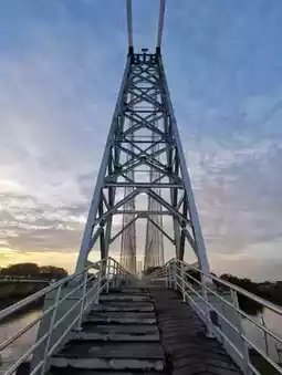 Around 6 a.m. at sunrise, Kuching’s Satok Suspension Bridge unveils a breathtaking spectacle. Golden sunlight pierces through the clouds, casting dazzling reflections on the bridge’s cables. A gentle breeze ripples the water, creating shimmering waves that mirror the sky’s vibrant hues. Standing on the bridge, gazing toward Sarawak River’s city skyline, adds a layer of serenity and grandeur. More than just a suspension bridge, it is a unique landmark of Kuching, drawing visitors to pause and savor the promise of wonder and hope brought by the rising sun.