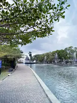 A peaceful lake reflects the surrounding pavilions and willow trees, creating a serene atmosphere ideal for evening strolls. Visitors can also enjoy the stone bridges, gardens, and statues, including a prominent sculpture of Admiral Zheng He. Whether you’re jogging, taking photos, or simply unwinding, the park offers a picturesque escape from the city buzz—making it a must-visit in Kuching.