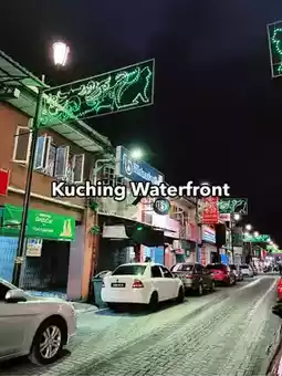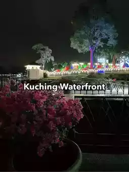 Kuching Waterfront transforms into a breathtaking sight as night falls, making it a must-visit destination for both locals and tourists. The entire promenade lights up beautifully, reflecting off the calm waters of the Sarawak River and creating a magical atmosphere.