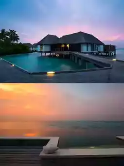 Water villa: I stayed two nights in a sunrise water villa, which was larger than the beach villa. It had an outdoor infinity pool, perfect for photos, and was far from the island, so you could call a hotel buggy for free, with tips optional.