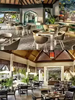 The hotel offers four restaurants and two bars, with Baraabaru serving customised Indian home cooking, featuring Jain, Satvik and organic dishes. Kandu is located next to the main pool and specializes in fresh catch of the day fish and seafood, salads and sides. Huraa features 2 elevated open-air pavilions overlooking the pool and sea, and serves Western, Asian and Maldian specialities. The open-plan Sunset Lounge overlooks the main pier and offers stunning sunset views outside the Island Spa, with direct access to Turtle Beach.