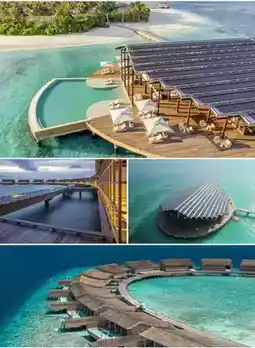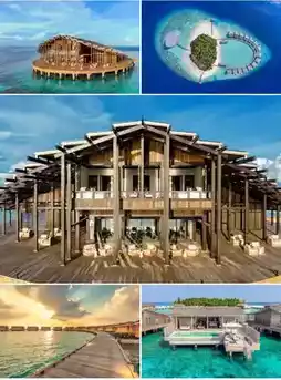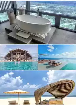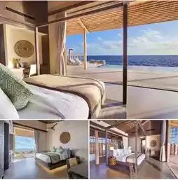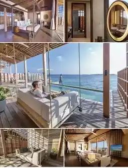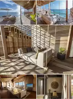 The overwater villas are extraordinary! Floor-to-ceiling windows flood the space with unobstructed ocean views—bathe while watching coral sway and fish dart by. The wooden deck extends over the water, complete with a swing sofa for swaying in the sea breeze and soaking up the sun, dialing the vacation vibes to the max. The interiors are minimalist yet luxurious, with plush beds where even your dreams take on a serene blue hue💙.