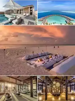 This resort occupies an entire private island, where the sea sparkles like gemstones and the sand is as fine as flour. Whether watching the sunrise from your overwater villa terrace as the ocean turns soft peach-pink, or lounging on a beach chair at dusk with the waves harmonizing with the sunset, every glance is a breathtaking seascape—like stepping into your own island fairytale🌊.