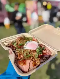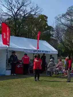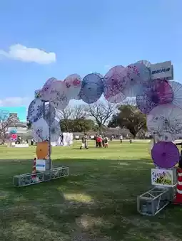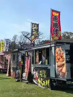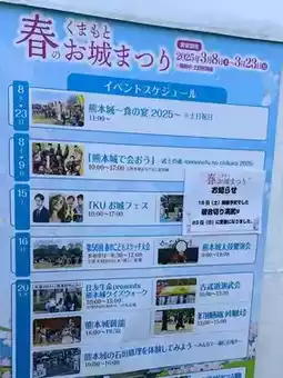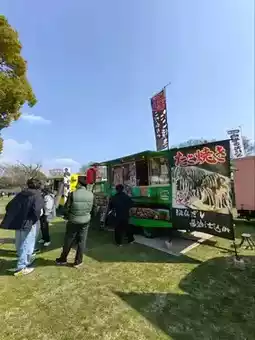 All city government activities are held here. It happened to be spring break in Japan, so there was a Kumamoto Castle Food Festival and outdoor activities by a private insurance agency. Although the cherry blossoms haven't bloomed yet, there are many food trucks and the atmosphere is great. Let's try the Japanese BBQ beef rice first!