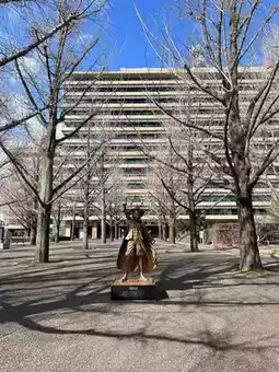 ⛰️ And one of them is the statue of Luffy, located in front of the Kumamoto City Hall, amidst many ginkgo trees.
