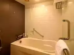 The separated bathroom includes a shower and a large bathtub, perfect for relaxing with the provided bath salts. I fell asleep while gazing at the illuminated Kumamoto Castle night view and woke up to face the castle directly from my bed.