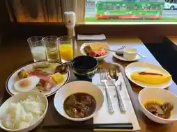 At 6:30 AM, I joined breakfast. True to Kumamoto's reputation as a city of horse meat, the horse meat curry and horse meat sukiyaki were delightful specialties. The tender horse meat made for a hearty start to the day. The restaurant on the 2nd floor offers a tram view, with trams passing by every five minutes.