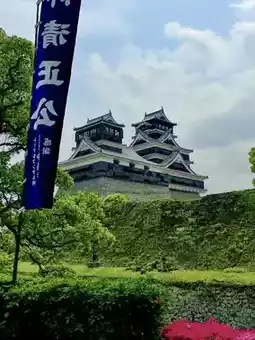 From the shrine grounds, you can see the castle tower of Kumamoto Castle up close, and it is perfect for taking photos📸