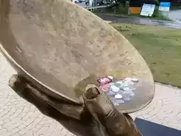 Jinbei was smiling happily, and when I walked over, I saw a coin in his sake bowl.