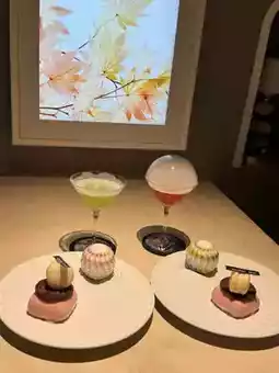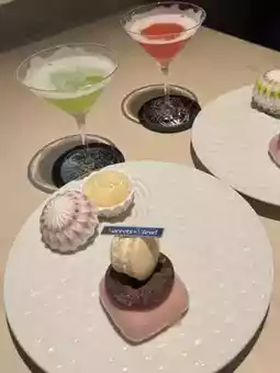 Enjoy the gorgeous cakes created by our pastry chefs and the original cocktails, with the bubbles added right before your eyes! Sweets cafe & bar Secrets=View! (Scribe)