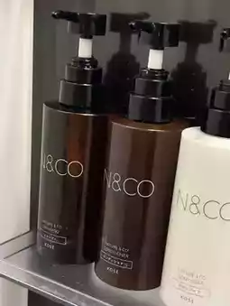 The bathroom features a separate wet and dry area, a soaking tub, and high-quality amenities. The toiletries have a light herbal scent, inviting you to sleep.