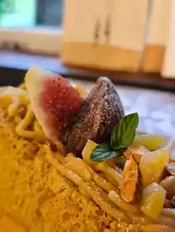 There's very little seating inside the restaurant, so customers are mostly seated on the terrace or the outdoor wooden deck. Reservations are accepted, and takeout and delivery are available.