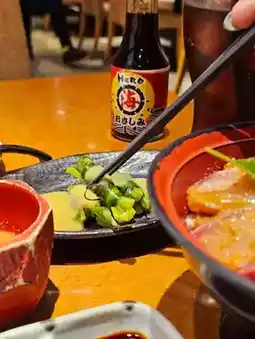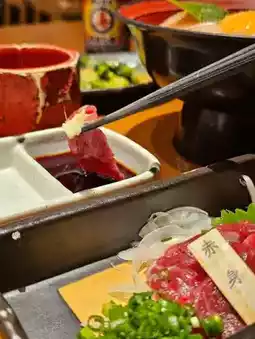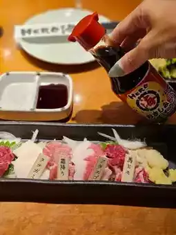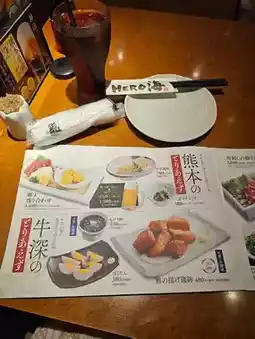 They also offer a wide variety of local dishes, including Kumamoto specialties like horse sashimi platters, mustard lotus root, and ichimonji guruguru.