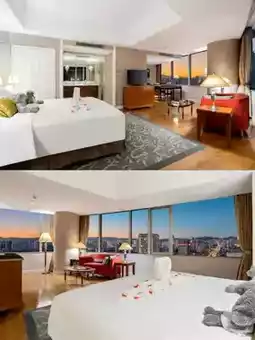🛏️ The room is warm and comfortable, the bedding is soft like clouds, and the city night view outside the window is beautiful. During the Spring Festival, the hotel also specially prepared characteristic Lunar New Year decorations, with the words "Fu" and Spring Festival couplets, it feels like moving your home to the hotel, full of the warmth of home.