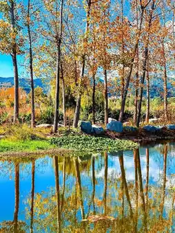 The Gangouwei Sky Mirror Wetland is known for its calm, mirror-like water surface that perfectly reflects the sky and surrounding scenery, creating breathtaking views. The serene and reflective environment makes it a truly stunning destination.