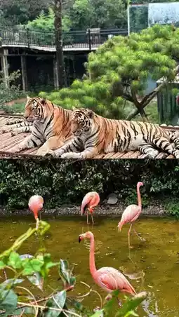 2. Tiger Hill🐯: The majestic tigers are the stars of this exhibit. The Bengal tigers' distinctive stripes shimmer in the sunlight as they patrol their territory, occasionally letting out a powerful roar that resonates even through the glass. The rare white tigers, with their elegant black stripes against a snowy coat, are a sight to behold. If you're lucky, you might witness them playfully interacting.