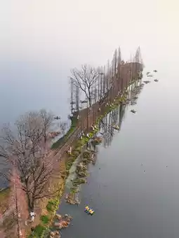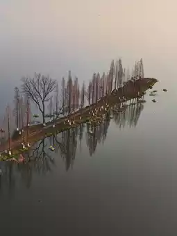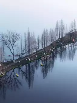 👉I don't know when it started, but a long, narrow embankment covered with metasequoia trees on the west bank of Dianchi Lake in Kunming has become a popular spot, known as the "Kunming Sky Mirror." It stretches into the lake within the Gangouwei Wetland Park.
