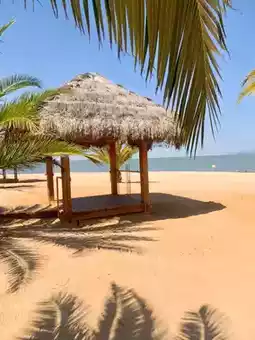 There are thatched houses 🛖 where you can play sand camping 🏕️