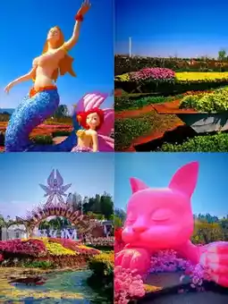 4⃣ Visual Focal Points: Discover the giant pink cat sculpture, mermaid landscape, and ancient castle check-in points.