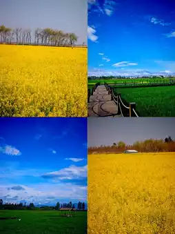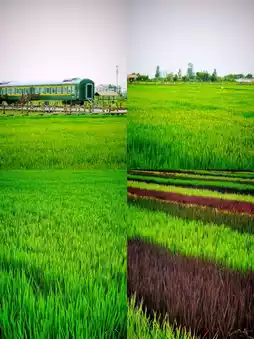 1⃣A retro green train slowly passes through the rapeseed flower fields, as if you've stepped into a Miyazaki fairytale! Standing by the railway tracks or on the wooden boardwalk, any photo you take will look like a movie still!