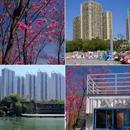 A waterfall park in the heart of Kunming with tall buildings as a backdrop. It is a public park where people come to relax. There is a large waterfall that is more than 400 meters wide and 12 meters high, and a bridge to walk on. However, it is not open on some days.