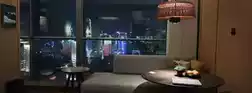 The outdoor semi-open-air green area terrace offers a panoramic view of the city's night scene, creating a great atmosphere for eating and chatting.