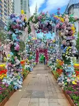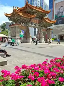 As you walk through the city, passing the Zhong'ai Archway, you’ll see colourful flowers everywhere, along the streets, in parks, and in gardens.