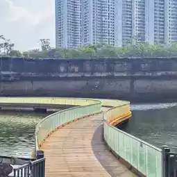 Below the Kunming Waterfall lies a serene lake with a walkway that allows visitors to enjoy the beautiful scenery. If you walk up to the Visitor Center, you can take in the expansive view of the lake above the waterfall. Additionally, there are paths around the lake for leisurely strolls and relaxation.