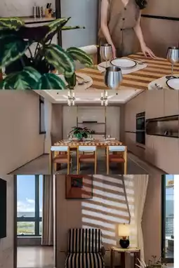 The space exudes artistic flair, with a designer dining table showcasing unique textures that shimmer in twilight. The living room, soft as a cloud, cradles weary bodies and minds. Smart curtains draw back to transform the master bedroom into a private cinema of Dian Lake's light and shadow, where every moment becomes a poetic landscape.