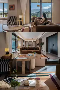 Everyday life begins on the 11th-floor cloudscape, where curtains gently part to embrace drifting clouds. The 270° wraparound balcony frames a romantic dance between @Dian Lake and the sunset over Western Hills. At dusk, golden light pours through floor-to-ceiling windows, glimmering on the lake's surface like scattered gold, filling even the air with tenderness.