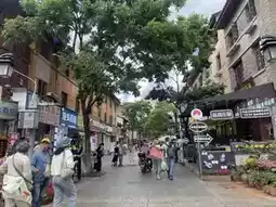 Shops in this area include restaurants, noodles, dumplings, and noodle shops across the bridge, as well as cafes, tea, and coffee shops. There are many shops to choose from, such as hay tea or luckin coffee.