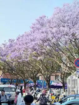 Every May, the purple flowers of the jacaranda trees lining both sides of the street bloom all at once, creating a scene that makes you feel like you're walking through a dream.