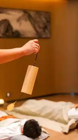 Precise 1-hour classes (morning/noon/evening options), each unique, blending essential oil therapy + singing bowl frequencies + guided energy work → Efficient stress release, focused recharging, seamlessly synced with city life.
