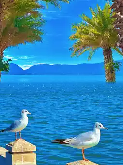 ✅ Pretend You're in Sanya: Palm trees + white sand + turquoise lake water, photos look convincingly tropical