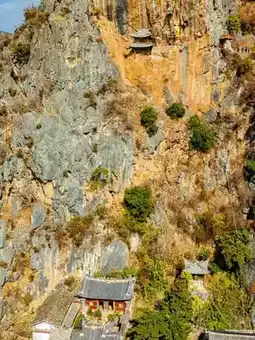 Dali Hanging Temple typically refers to the Xishan Hanging Temple in Kunming, Yunnan, located at Luohan Mountain (southern foothills of Taihua Mountain) in the western suburbs of Kunming, adjacent to Dianchi Lake. Its main structure is the Sanqing Pavilion, a Taoist architectural complex consisting of nine levels and eleven pavilions, ingeniously built into the cliff face using wooden walkways that pass through stone caves, creating the "Hanging Temple" marvel. This temple, along with the Hanging Temple on Hengshan Mountain in Shanxi and the Hanging Temple on Cangyan Mountain in Hebei, is known as one of China's three great hanging temples.