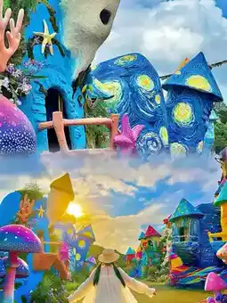 ✨Hand-painted Starry Sky + Ocean-themed Mushroom Houses