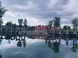 One of the most striking features is the series of continuous circular arches made of gray bricks. These arches are not merely decorative—they are layered and strategically spaced, forming a unique tunnel full of perspective and depth. Walking through them feels like traversing a time corridor leading to an unknown world. Each arch frames a different view, creating a magical experience where the scenery changes with every step. From a distance, the arches, reflected in the water, form a serene yet dynamic picture alongside the clouds in the sky and the surrounding greenery and flowers. This design not only skillfully utilizes spatial depth but also imbues the entire scene with a distinct artistic atmosphere, as if the garden designer is telling a story about the harmonious coexistence of architecture and nature.