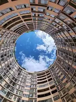 Amid Kunming's urban skyline, a unique structure has captured widespread attention—Aocheng Tower. What makes this building remarkable is its massive circular atrium, which forms an "eye" that seems to open directly to the sky. Gazing upward from the base, the layered apartment floors frame the blue sky and drifting clouds, creating a breathtaking sight that has earned it the online fame of being called the "Eye in the Sky."