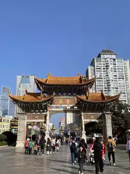 (6) Golden Horse and Jade Rooster Archway: Located a short walk from Kunming Old Street, these two archways were built during the Ming and Qing Dynasties. The eastern archway is called Golden Horse Archway, while the western one is Jade Rooster Archway, separated by only a few dozen meters. Legend has it that under the right conditions, you can witness the "Golden and Jade Radiance" phenomenon. As the sun sets, golden rays from the west illuminate Jade Rooster Archway, casting its shadow on the eastern street. Simultaneously, the moon rises in the east, its silver light shining on Golden Horse Archway, projecting its shadow onto the western street. The overlapping shadows create a stunning scene. Together with the "Zhong’ai Archway" to the north, these three archways form the "Three Arches of Kunming."